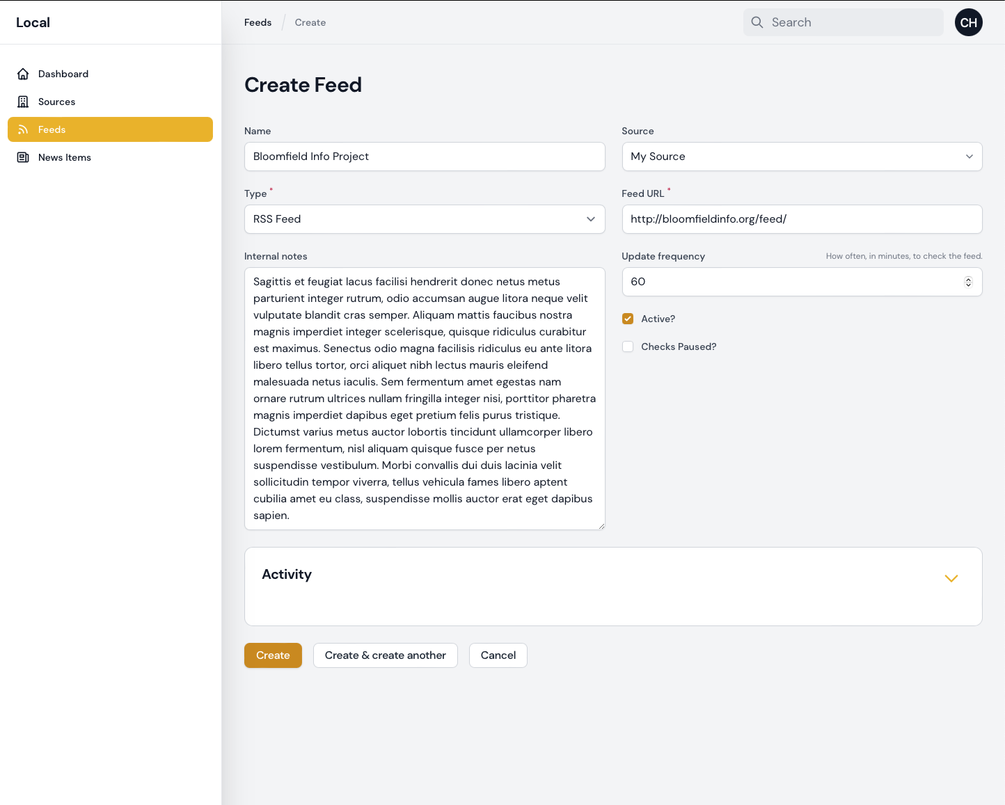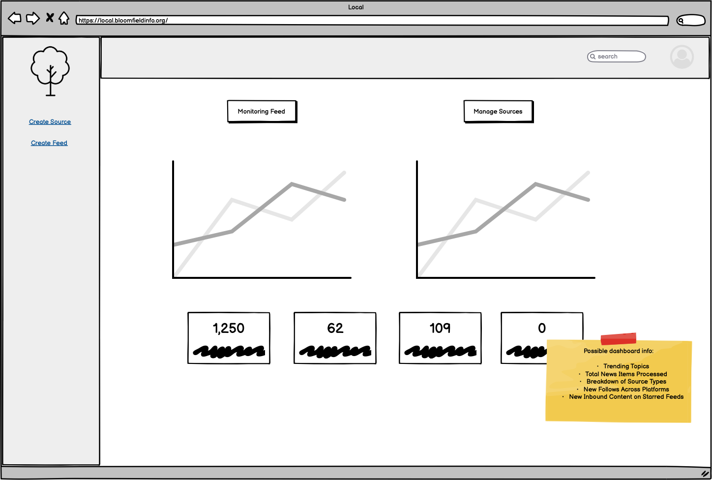 Over the last few weeks I’ve been working with Simon to talk through and refine some wireframe mockups of how the new application/tool could work. I’ll share about those separately soon, but one interesting and important conversation that came out of this process is about how the Bloomfield team does their review of content that comes in through the existing news harvest process, and how that should be reflected in a new workflow and tool.