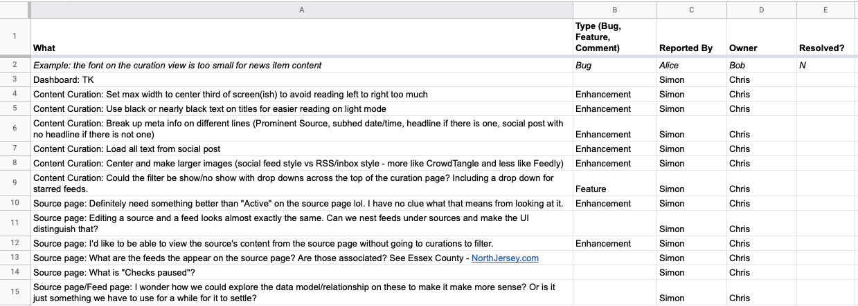 The first round of feedback that came in was a mix of big picture refresh questions about the data model, smaller aesthetic suggestions, and enhancements/requests around the content curation view: