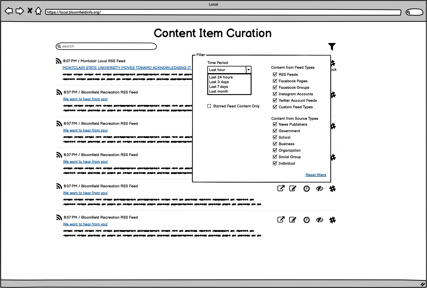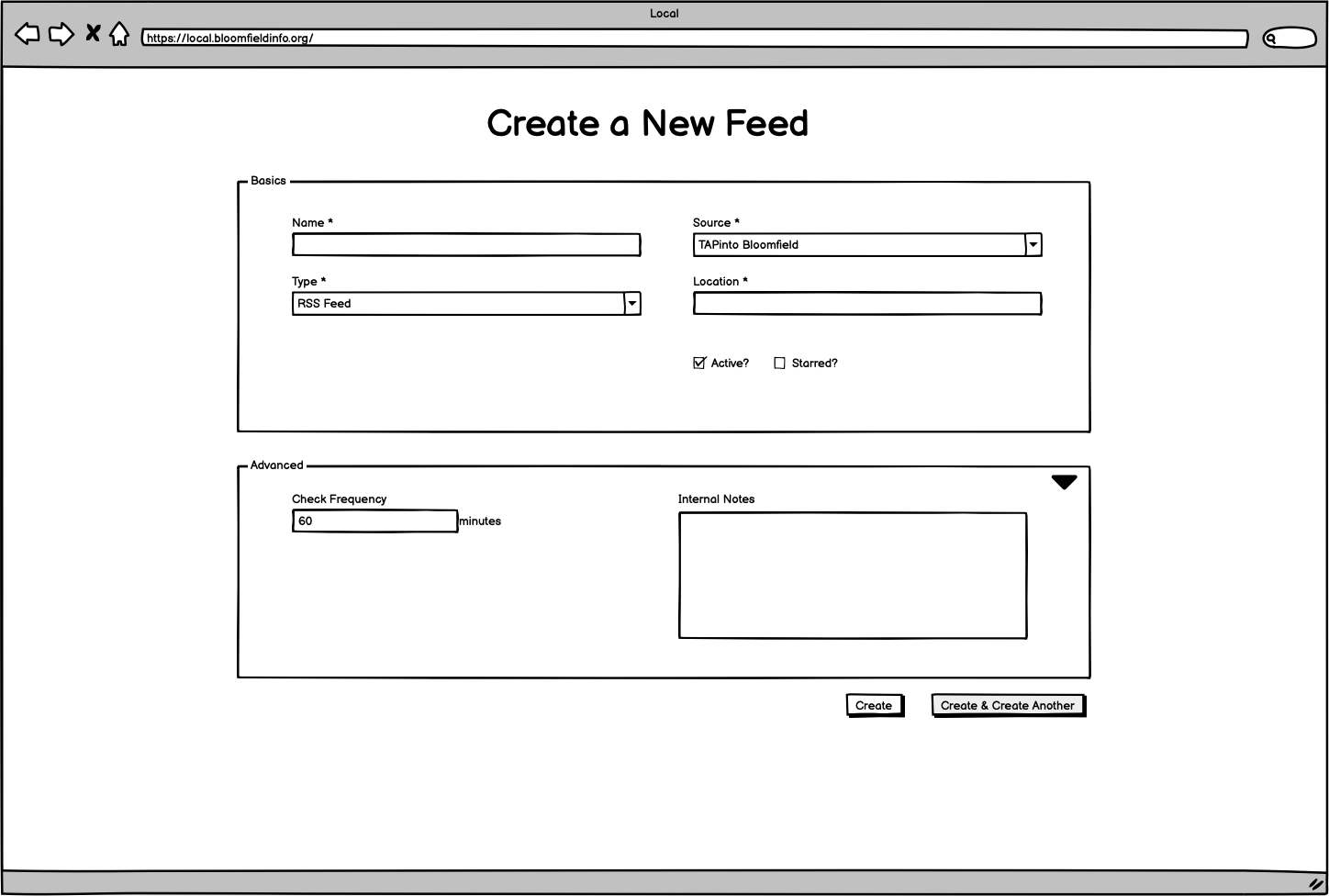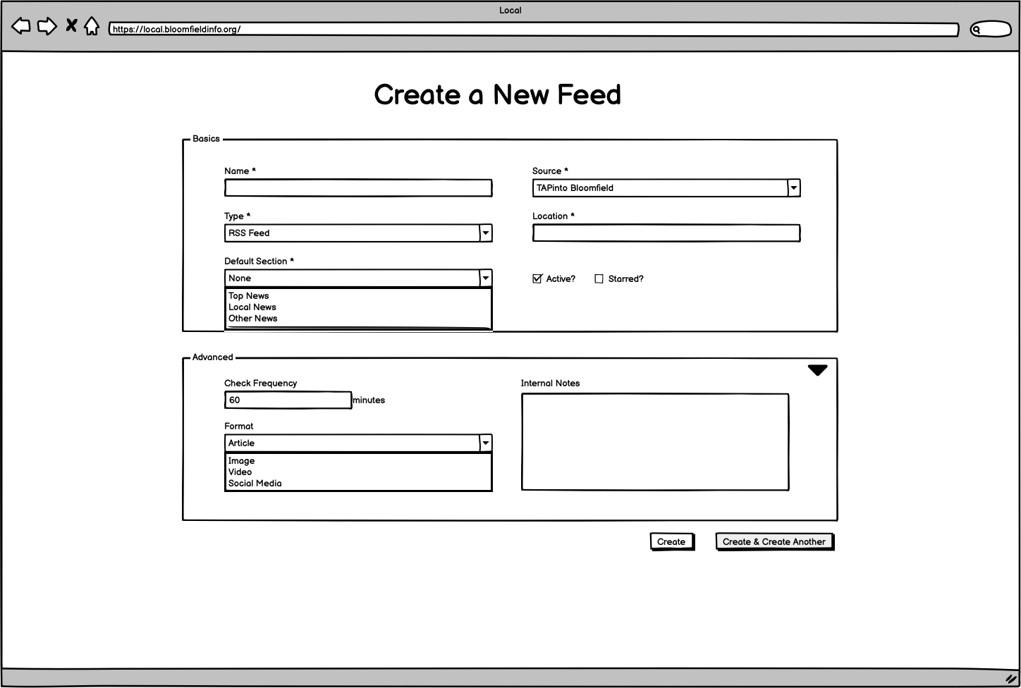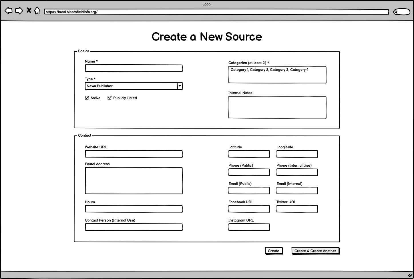 This expanded workflow would also have some implications for other parts of the interface that will be built initially. For example, Source and Feed creation will have some additional fields to aid in categorizing and managing the content that come from those.