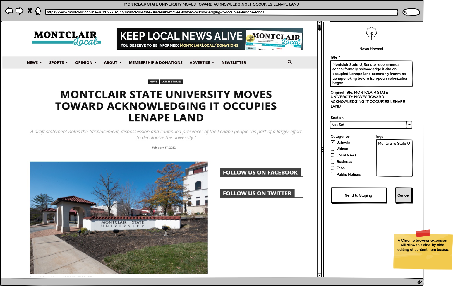 Instead of using the browser extension to send content to their current Google Sheet-driven workflow, they would instead send updates back into the main tool for staging (working toward the creation of a Daily Bulletin publication or other kind of publication):